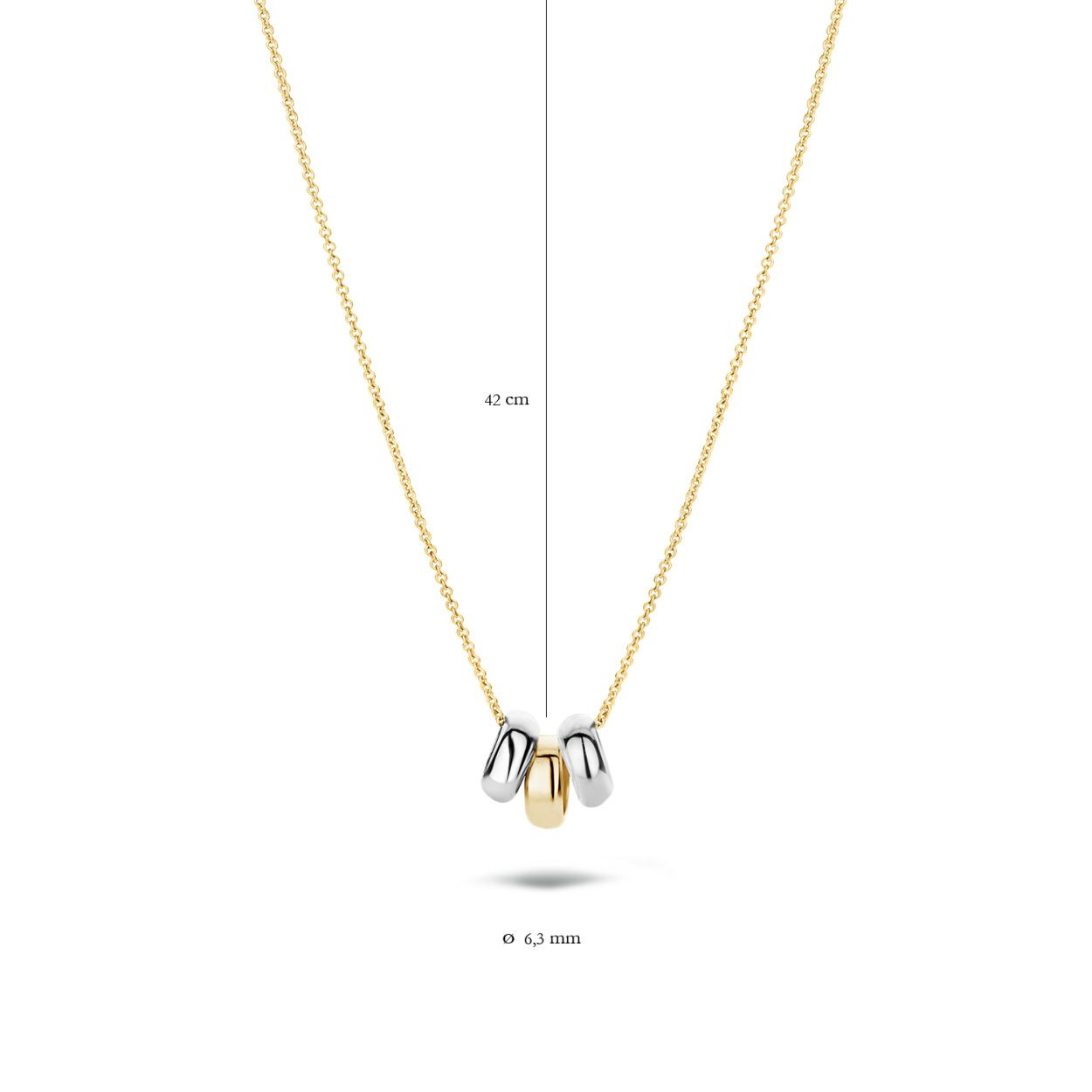 The chance to Blush Blush Jewels worden met zorg, liefde en oog voor detail gemaakt van 14 karaat goud. Aan de ketting zijn drie afzonderlijk bewegende, ronde, glanzend gepolijste hangers geplaatst. De bedels zijn uitgevoerd in roségoud en witgoud. Iedere hanger is 2 millimeter breed en heeft een doorsnede van 4,5 millimeter. Het collier is 42cm lang