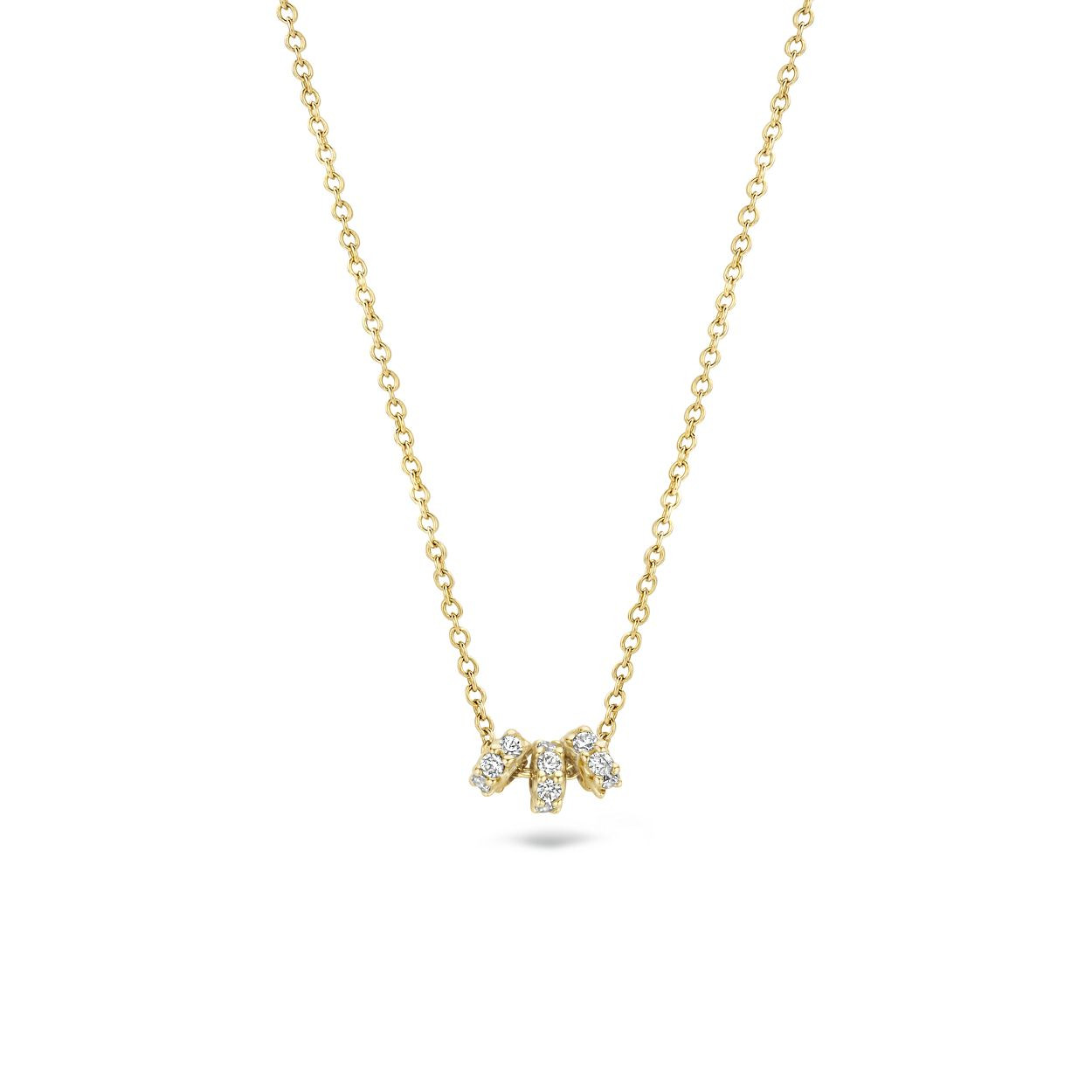 Blush ketting met referentie 3136YZI is gemaakt van 14 karaats geelgoud met een lengte van 42 centimeter. De drie hangers met zorkonia stenen bewegen vrij over het ankercollier, dat wordt gesloten met een karabijnsluiting. De hangers zijn in geelgoud uitgevoerd met zirkonia stenen gezet. Iedere hanger heeft een doorsnede van 3 millimeter. Let your heart glow - Wear your Blush