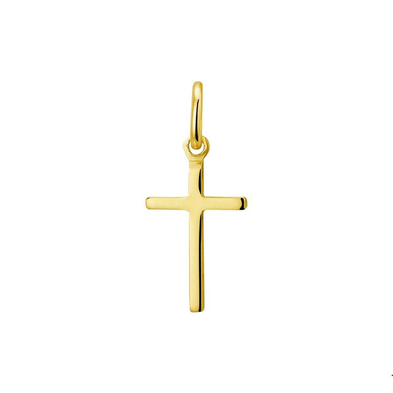 Beschrijving: Geelgouden hanger met een kruis. Doelgroep: unisexBreedte: 9 mmHoogte: 15.5 mm