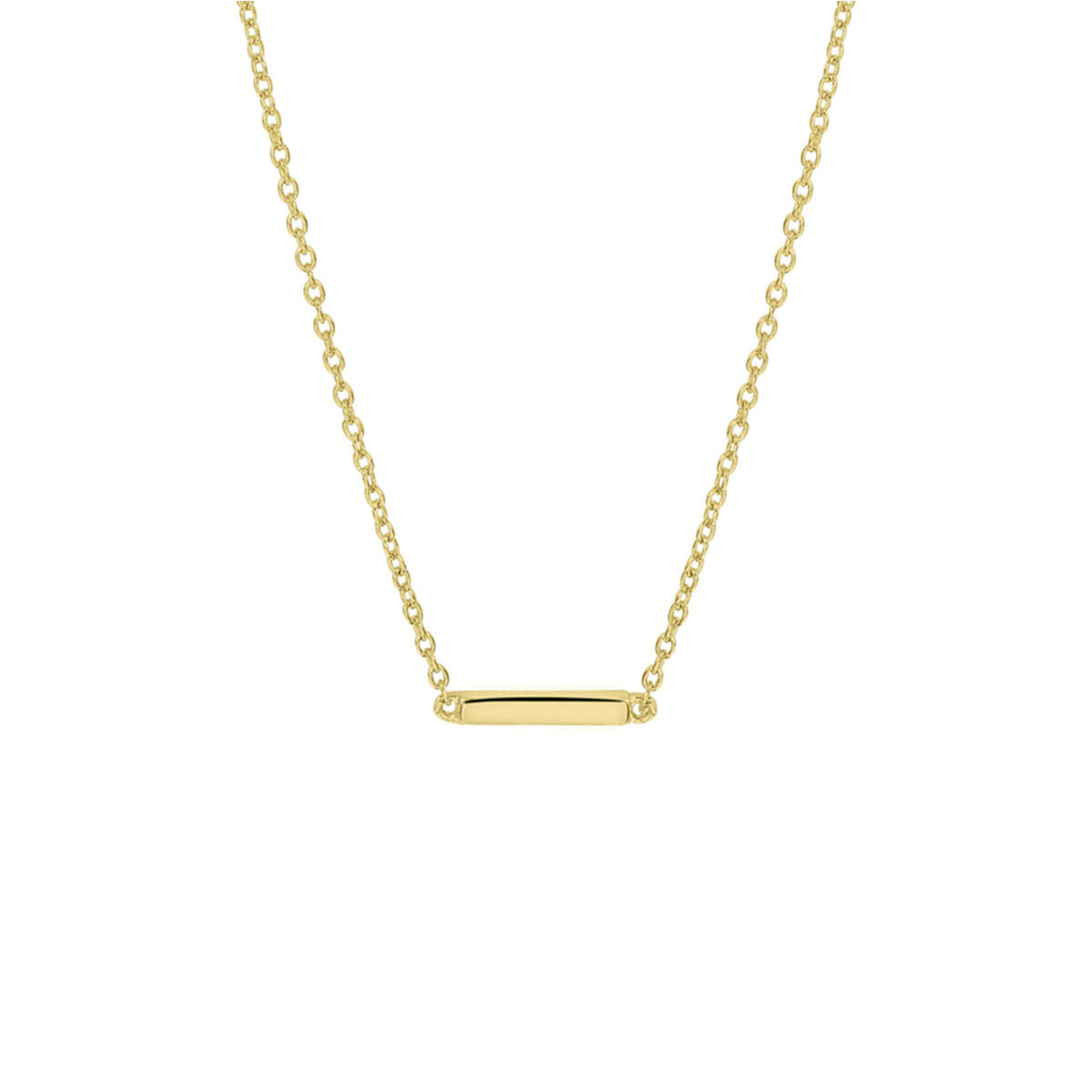 Trendy geelgoud op zilveren 1.2mm anker collier met een lengte van 41cm en een extensie van 4cm. uitgevoerd met een balkje van 2x13mm. Het collier is te combineren met bijpassende sieraden uit onze collectie. Zo maak je gemakkelijk een hippe trendy set die door het minimalistische design nog vele jaren met plezier te dragen is.