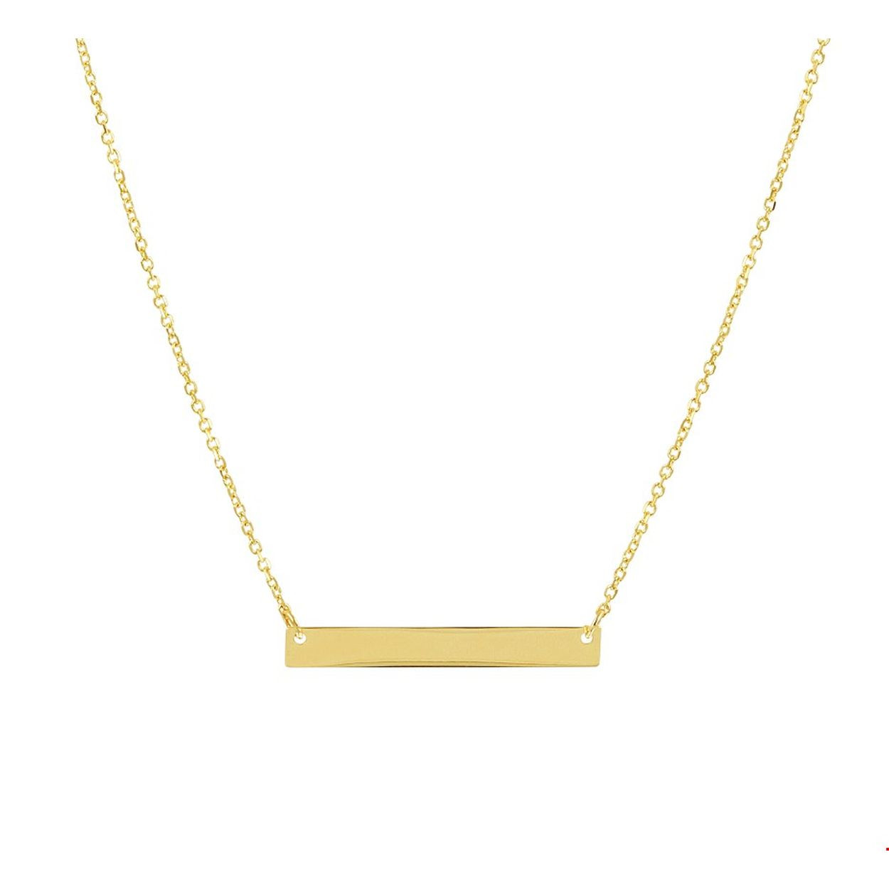 14k Geelgouden anker collier uitgevoerd met een graveerplaat van 3.5x25mm. Het collier heeft draaglengtes van 43 en 46cm.