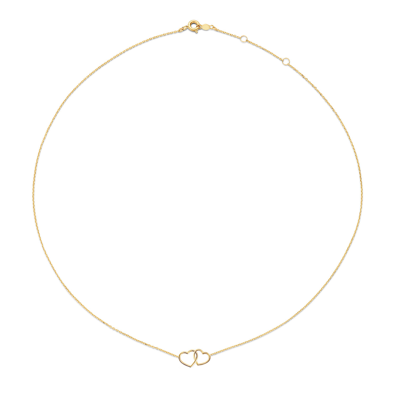 Jackie Double Heart Necklace Love is in the air met deze Double Heart necklace, een echte musthave! Gemaakt van 14K goud en uniek door de 2 in elkaar geweven harten. Mooi om zelf te dragen of om een dierbare kado te doen. Speciaal voor iemand die heel belangrijk voor je is. Je moeder. Iets dat zij altijd zal koesteren. Maak je look helemaal af door de ketting te combineren met de bijpassende Double Heart armband.