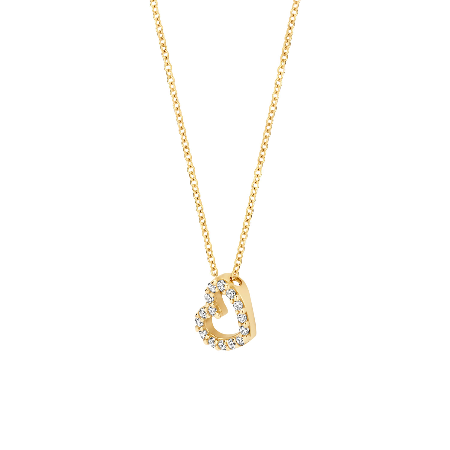 Geelgoud en een hart van Zirkonia�Perfecte ingredi�nten voor dit stijlvolle gouden Blush collier { 3072YZI }. De geelgouden open schakels lopen door naar het geelgouden hart waarin 15 Zirkonia�s zijn verwerkt. Dit geelgouden collier is geschikt voor elke gelegenheid. De ketting is 42 cm lang en sluit met een geelgouden veerringsluiting.