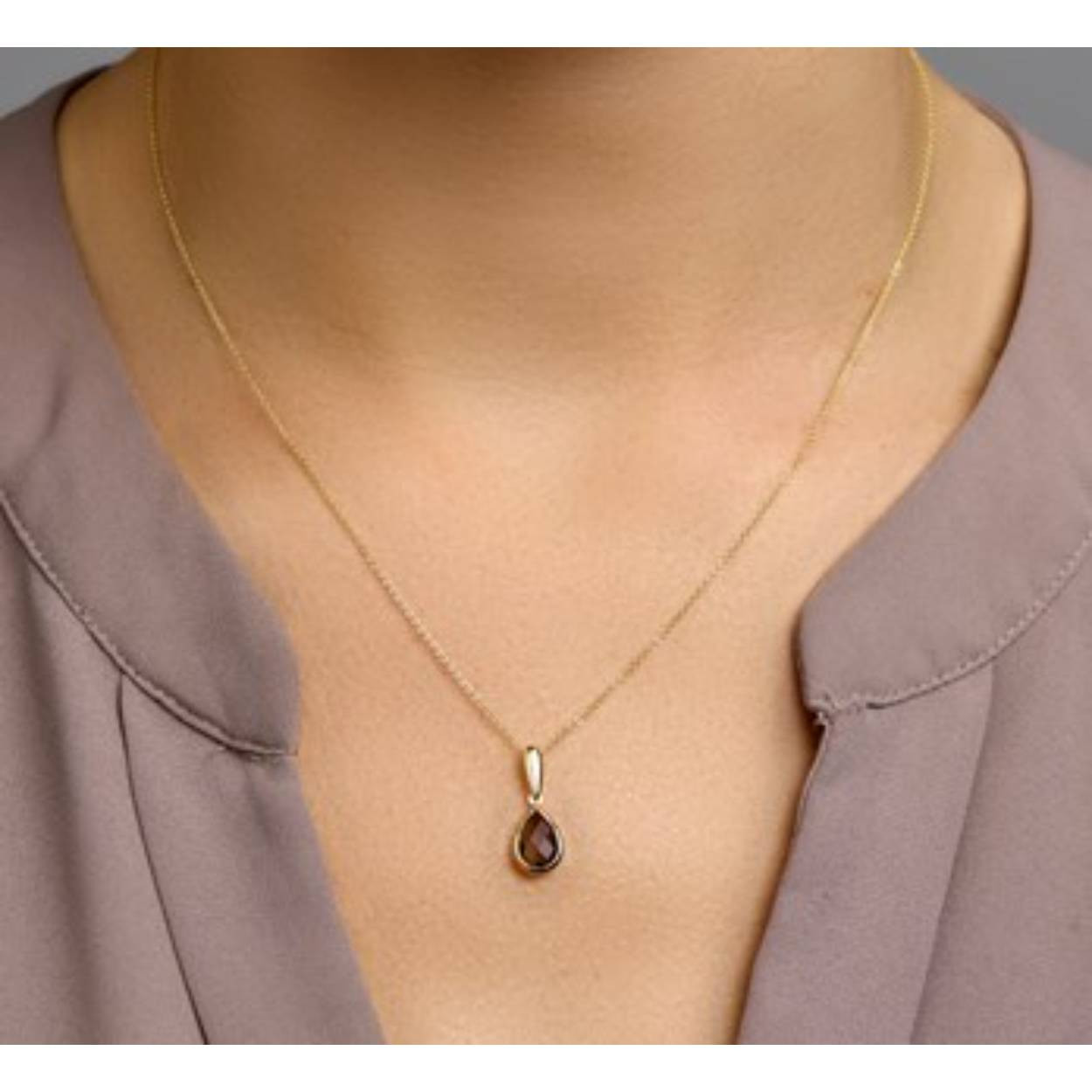 Juist door het simplistische design is dit een echte eyecatcher. Ontdek hoe de kleuren van het goud en de edelsteen elkaar versterken. Details: Geelgouden hanger met rookkwarts.