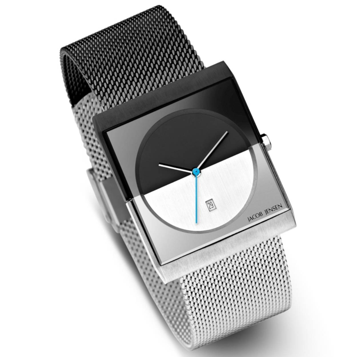De horloges uit de Classic collectie van Jacob Jensen hebben de iconische tweekleurige wijzerplaat, die zo typisch is voor het design van Jacob Jensen. Extra designelementen van de uniseks Classic 515 zijn de zeshoekige kroon en de wijzers die bestaan uit twee lagen: een matte onderlaag en een zwarte bovenlaag. Design met een functie, want de kroon is zo beter te bedienen en de wijzers makkelijker af te lezen.