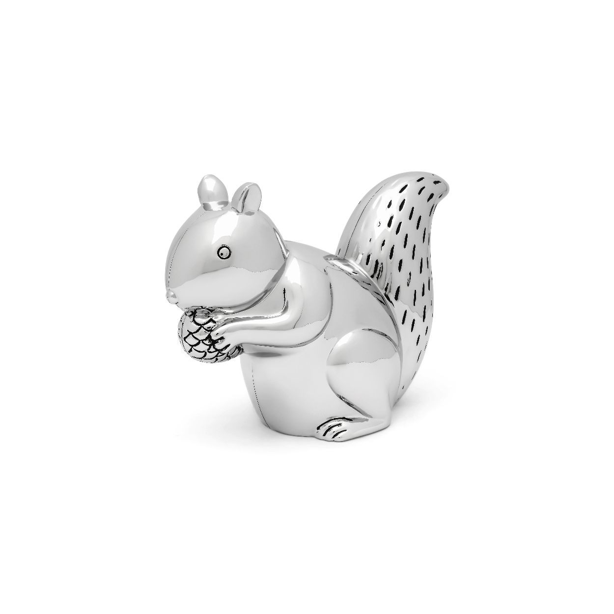 Deze zilveren spaarpot is van het merk Zilverstad. De spaarpot is in de vorm van een eekhoorn.